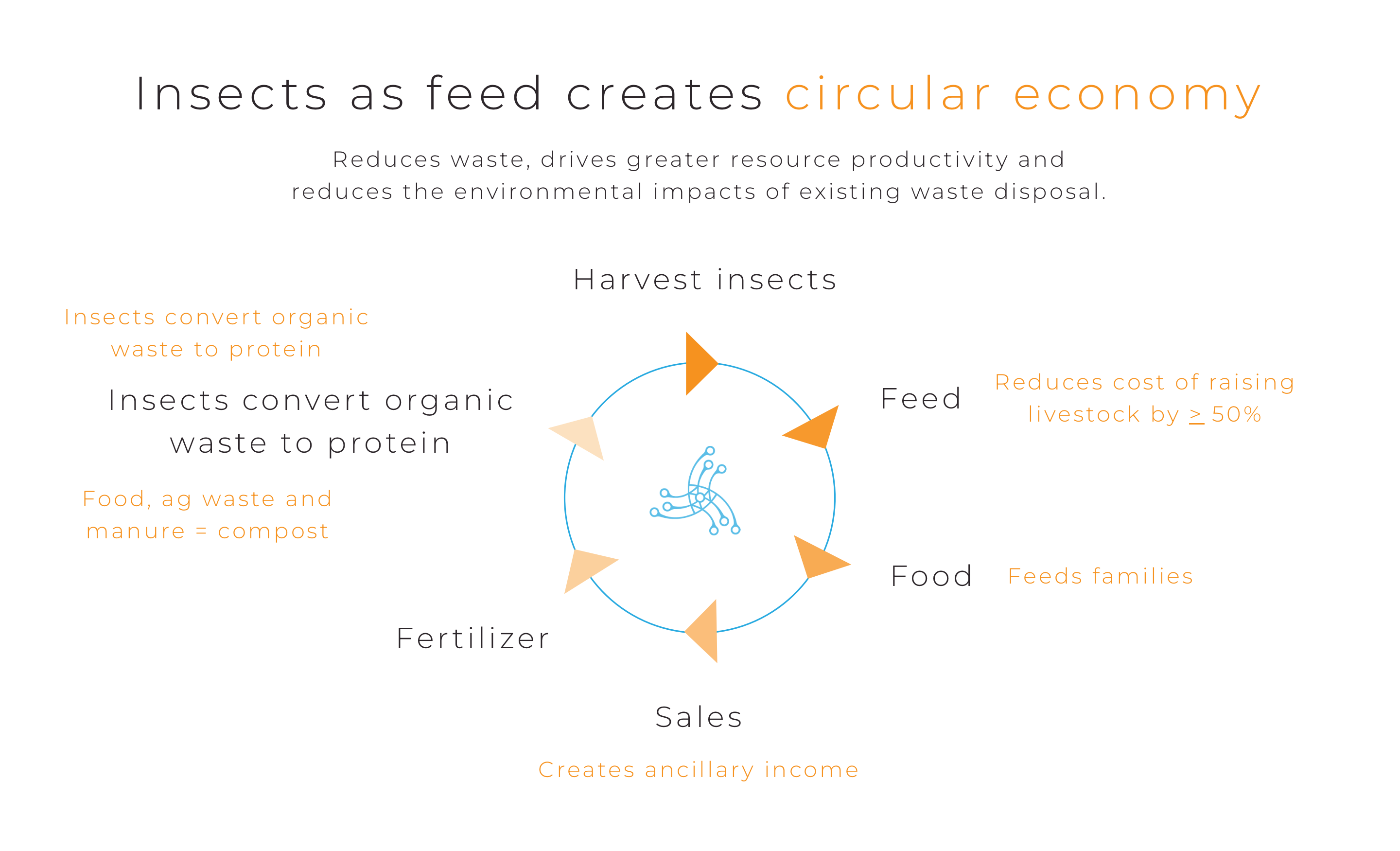 The use of insects harvested as animal feed is a green revolution for global agriculture, which concept is endorsed by the United States Department of Agriculture, scientific and philanthropic organizations and countries around the world. Insects are an unquestionable source of high-quality, valuable protein. Harvesting pests directly from agricultural landscapes where they are abundant contributes to more sustainable animal feed production while managing insect and vector populations.
